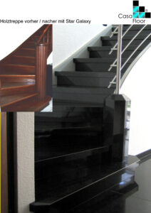 Mit unserem innovativen Verfahren zur Granitverkleidung hölzerner Oberflächen sind Ihre älteren Holztreppen in kurzer Zeit wunderschön saniert und dabei widerstandsfähiger und langlebiger als je zuvor.